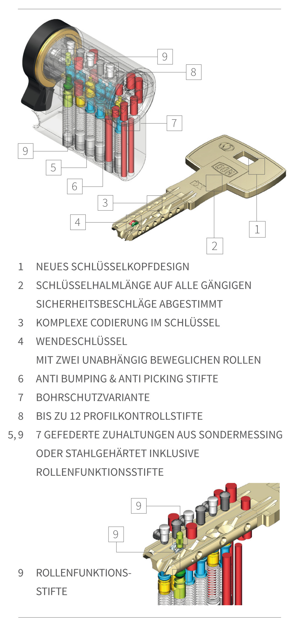 Not- und Gefahrenfunktion bedeutet, dass Sie von außen aufschließen können, obwohl innen ein Schlüssel steckt.
